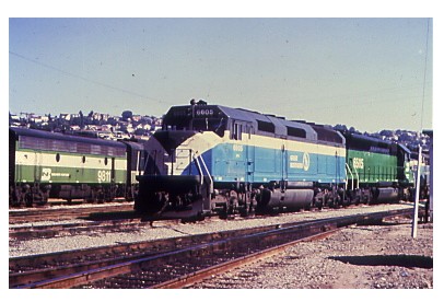 The Southern Pacific leased several SD-40-2's and receiver units to test radio control operations on their line. Here is BN 6081 at West Colton in September of 1979.