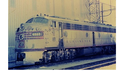 CB&Q E9-A 9953 rested by the engine house at Interbay in Seattle in June of 1972.