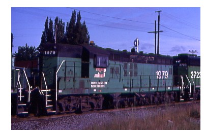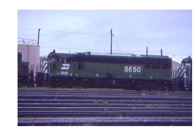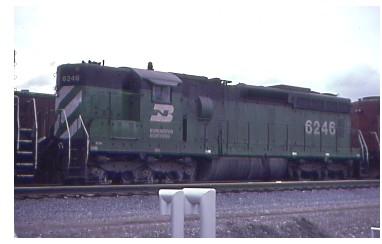 BN SD-9 6193, ex CB&Q was shopped at Livingston in August of 1980.