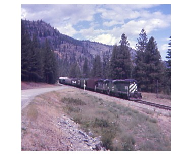 He is a look back at the early days of the Burlington Northern. We will first look at each paint scheme of the former railroads that made up the BN with BN sublettering on the cabs before getting to the former Cascade Green paint scheme we all knew and loved. Above BN G9's 1761 and 1802 rolled through Orient, Washington in August of 1974.