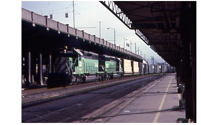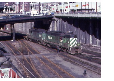 BN 1850 and 1852, ex NP comes through King Street Station in March of 1980.