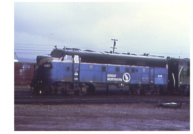 Great Northern "Sky Blue" F-3A 698 at Whitefish,MT in June of 1972.