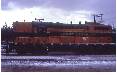 Great Northern GP-7 1517 after a heavy hail storm in June of 1972.