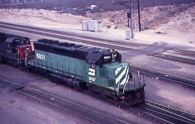 BN merged with the Frisco on April 17th,1980. Frisco SD-45 916 was in pool service at Pocotello in August of 1980.