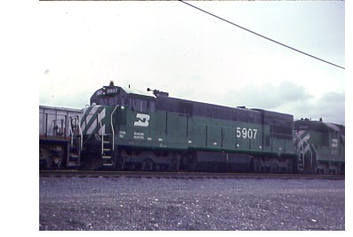 BN U-33-C 5907 was in pool service on the Union Pacific at Pocatello in April of 1980.