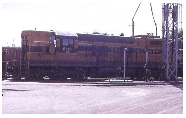 GN SD-9 6118 in the fuel racks at Sioux Falls,South Dakota in August of 1971.