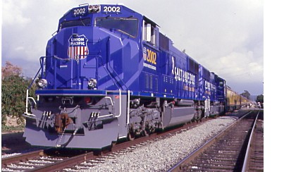 Union Pacific Winter 2003 Olympic Train at Santa Barbara on 1/16/2002.