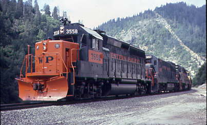In 1981 we managed to get one all WP powered train with the WP U-30-B 3068 leading its train into Portola.