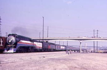 In 1977, the 4449 returned to Portland on an Amtrak Transcontinental Steam Excursion and we caught him heading west through Colton, California.