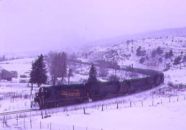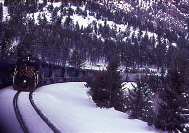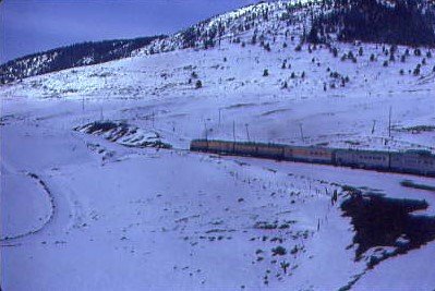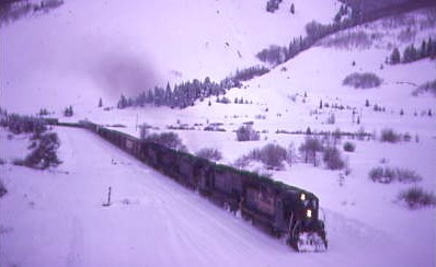 12/19/1983 -- We followed the train as it climbed towards the 10,020 foot high Summit Tunnel, the highest railroad crossing in North America.