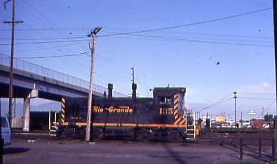 August 1980 -- In Salt Lake City was Denver and Rio Grande Western SW1200 135, built by Electro-Motive Division in 1965 and retired in 1995. It was sold to OmniTRAX in February 1995 then to Diesel Supply Company in Hudson, Wisconsin before becoming Northland Farm Co-op Elevator 135 in Rake, Iowa.