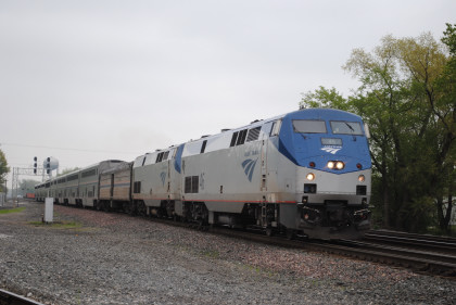 Pere Marquette, Amtrak 371, sped its way towards its first station stop of the morning at Holland, MI on 5/13/2013.
