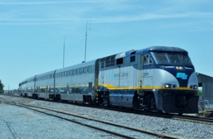 San Joaquin Train 717 at the station stop in Wasco on 3/12/2015.