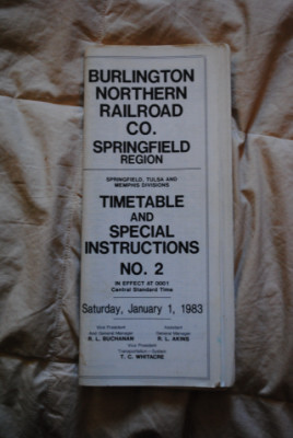 Burlington Northern Springfield Region 2 January 1, 1983.