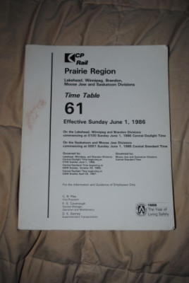 Canadian Pacific Prairie Region 61 June 1, 1986.