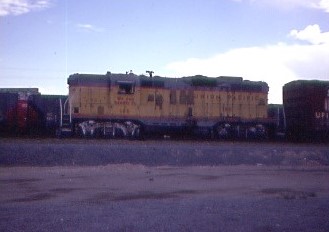 August 1980 -- Union Pacific GP30B 729B, built by Electro-Motive Division in 1963 and retired in 1983, then scrapped in 1986, waited for departure from Pocatello, Idaho.