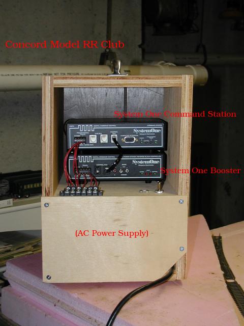 plywood box holds one of the Club's AC power transformer, DCC booster,