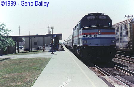 At 3:52 pm, Amtrak's New York City Bound Train #64, the Maple Leaf arrives in Depew with F40PH #278 leading its usual 4 coach 1 cafe car consist.