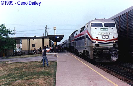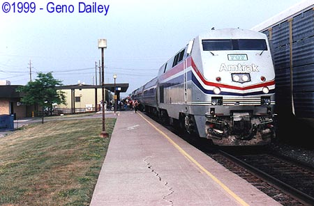 Running 3 and a half hours late is Amtrak Train #48, the Lake Shore Limited, bound for New York City, seen here pulling into the station at 9:48am. Over the past few months, Amtrak has been equipping this train with 1 P42DC and an F40PH, for some reason. Today, P42 #79 was leading with F40 #350 trailing. When the train stopped, I was able to meet up with 2 members of the Greater Capital District Railfan Association, as they were heading to Albany.