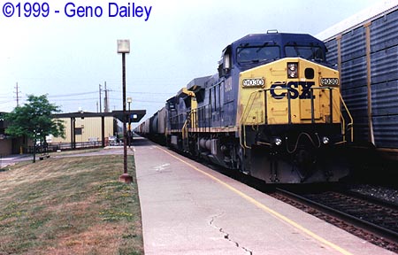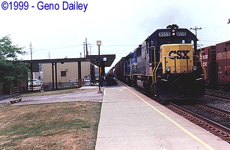 Another Eastbound!!! This time, CSX SD50 #8555 leads this Manifest past the station at 1:32pm.