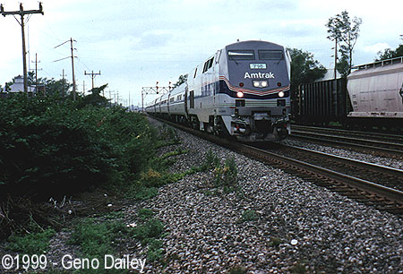 After walking about another mile down a back road that parallels the tracks, I took a peak through a clearing in the bushes to find Amtrak Train #288, the Water Level Express, preparing to make its station stop in Depew less than a mile up the tracks. This train operates on Sundays and Holidays only in place of Train #284, and features an all-Metroliner equipped consist. The train is seen near Milepost 432 at 3:38pm heading East on Track #2.