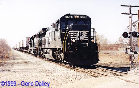 NORFOLK SOUTHERN ACTION!!! Paralleling the Chicago Line is Norfolk Southern's Ex-Nickel Plate Buffalo-Chicago Main Line. This line sees less traffic than the Chicago Line, but there are signs up at every crossing warning motorists of increased traffic that will be coming after the breakup. Today, we see an eastbound with C40-8 #8739 at 11:23am.
