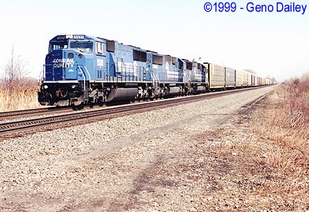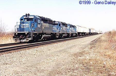 Conrail #6522 leads a trio of SD40-2's on this westbound TV train on Track #1 at 1:06pm. It is quite unusual to see a train on the Chicago Line with all SD40-2's as its power, well, in 8 years of trainwatching, its the first I've ever seen...