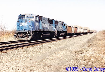 Conrail #5538, an SD60M pulls this westbound BCX-608 on Track #1 at 1:46pm.