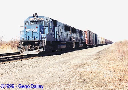 Finally, Conrail SD50 #6758 pulls this westbound BUEL-7 on Track #2 at 2:23pm.