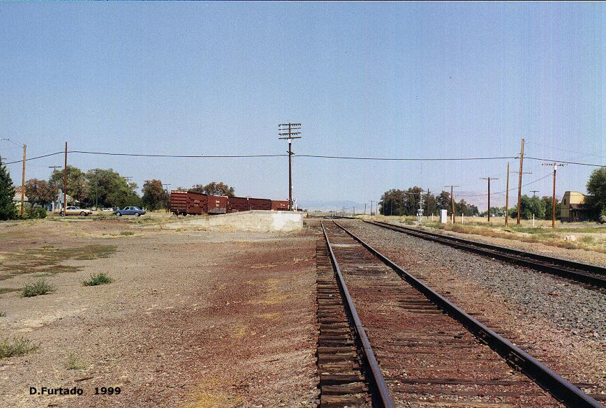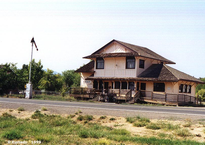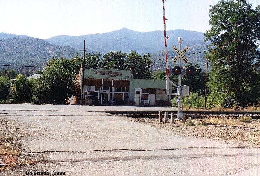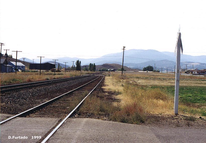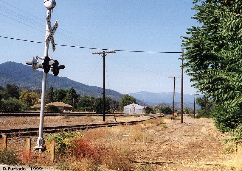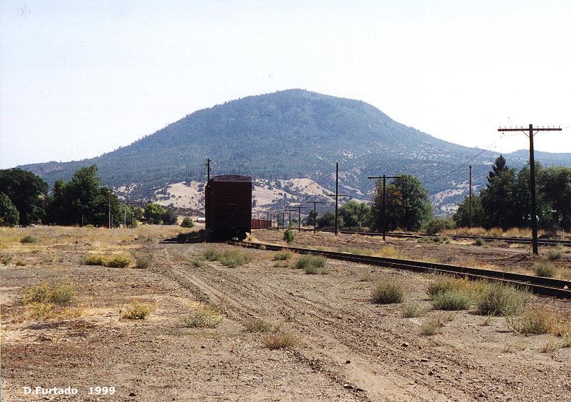 This view looks north, the platform in the center marks where the depot used to stand. The beginning of the Siskiyous are in the distance. |