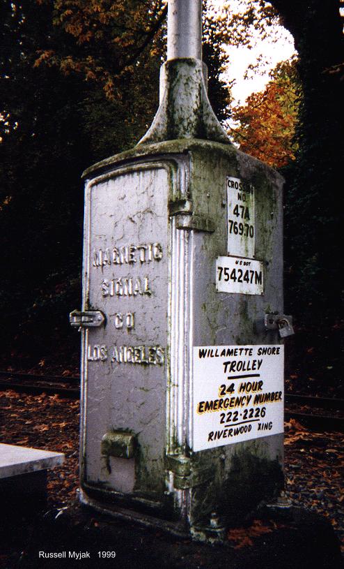 There were are three remaining wigwags on that line (until 2008), had uniquely painted banners. All three are of the classic "SP" style installation, and still have their Magnetic Signal cases. |