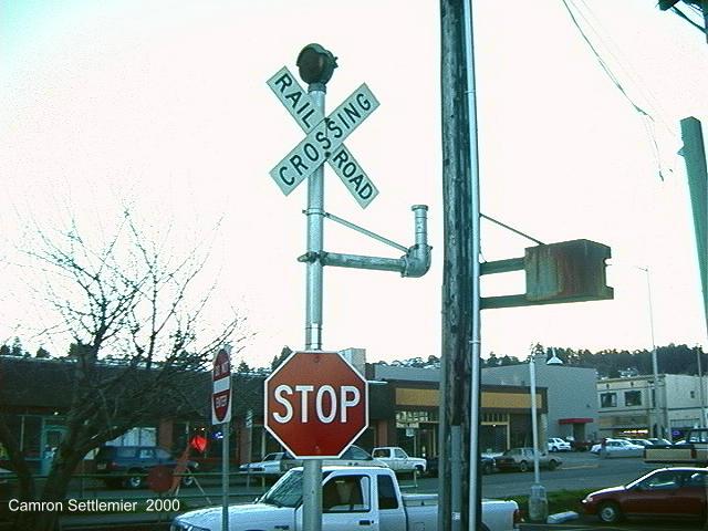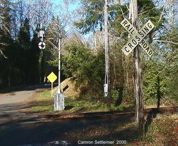 and just down the tracks, there she stood at another crossing! And what a nice location for one. Looks very much like a SP style lower quadrant wig-wag. While the base said "The Railroad Supply Co Chicago", the wig-wag itself is from Magnetic Flagman Co of Los Angeles. The wig-wag is located on Waterhouse Rd near the siding of Knappa, though no town exists there. The road is very rural and out of the way, although it does see a little traffic. Unfortunately the same can not be said of the Portland and Western railroad line, as there is no service past Wauna. P&W re-cleared the line to Astoria last year in the hopes of re-establishing service to Astoria, but that has not happened so far. It looks like the wig-wag is in good shape and hooked up should a train ever come by." |