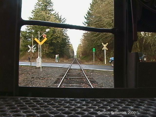 The above picture is a video frame capture of the Berlin Road wig-wags in what might be its last seconds of life. The view is from the floor looking out the rear of the caboose on the last run headed back to Lebanon. January 25, 2000. |