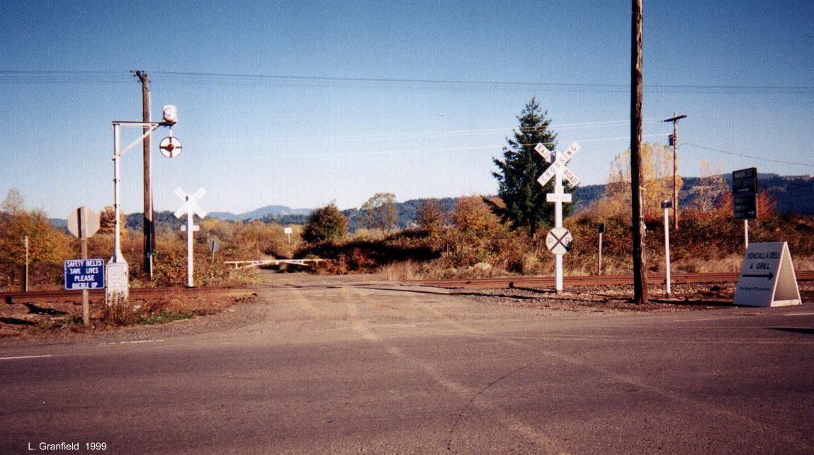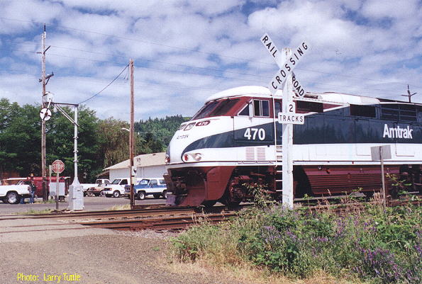 ![]() Here we see the Amtrak Talgo run through the Siskiyou line on June 18, 1999 as it passes the wigwag in Yoncalla. |