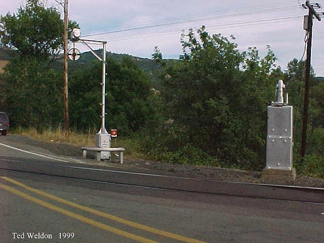 Larry Tuttle catches the Roseburg-Glendale Hauler as it passes the Dole Road wigwag at Round Prairie (Douglas County), Oregon. Rick Perry, signal maintainer for CORP, recently replaced the banner on this wigwag with a new reproduction banner. The original banner was sent to me (Dan) by Larry Tuttle and is undergoing restoration. Plans are for it to go back into service at Hugo within the next few months. |