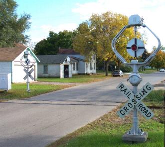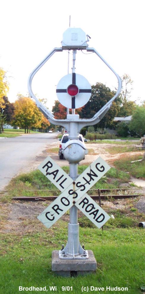 "These two wigwags are located in Brodhead, Wisconsin at the 3rd Ave. crossing of the Wisconsin and Southern Railroad. This was the former Milwaukee Road line from Janesville to Platteville and Mineral Point. As you can see from the photos, the unit on the north side of the tracks has the bell." |