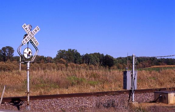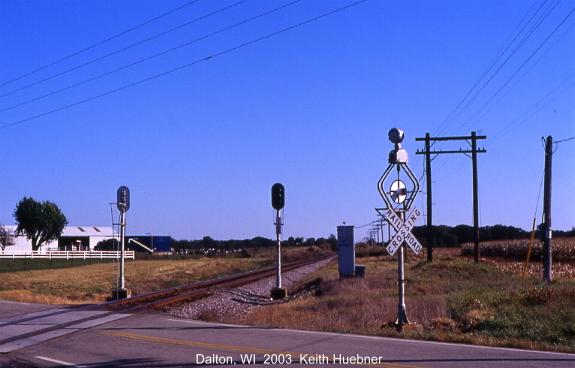 "Here are some pics of wig wags I found in Wisconsin on the Union Pacific's(ex-CNW) Adams Subdivision. The first one is at County Trunk Highway E(two signals, one shown) and the other is CTH H(just one signal). Both roads are between Dalton and Friesland(pronounced frees-land), WI. There was a recent photo of the CHT E wig wag with train in Railfan and Railroad magazine." |
