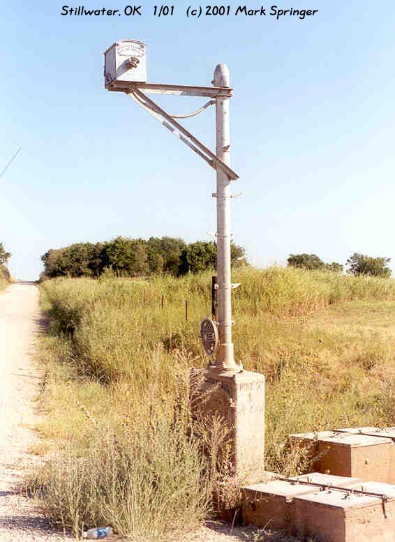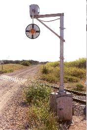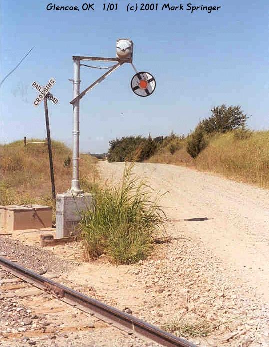 | This is the first of 2 wig wags that I have found on the Stillwater Central RR. This RR is operated by Watco RR company's and is ex ATSF. This one is at MP 19.34 which is Countryside Lane just west of Glencoe, OK. This line runs from Stillwater, OK to Pawnee, OK. This wig wag is still in service. |