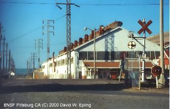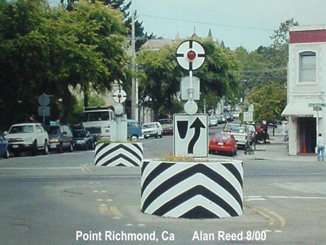 Alan Reed sends in this update. Note how the planter boxes have been repainted and striped. I hear BNSF is still trying to replace these with crossing gates and cantilevers. The City of Richmond is fighting this as they do not want these wigwags to be removed. (8/12/00) |