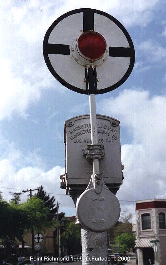 As of 12/13/04, these wigwags are now on display only. BNSF deactivated them after installing new crossing gates. For more info, check out this page that has the complete history of the battle between the City of Richmond and BNSF. Follow the 2018 restoration of the Point Richmond wigwags at this page |