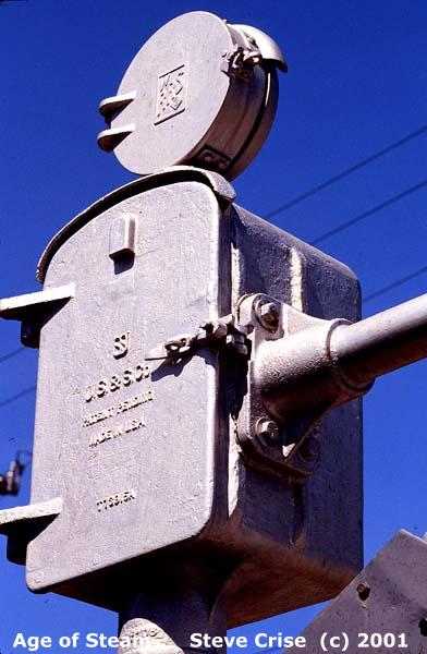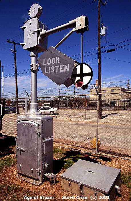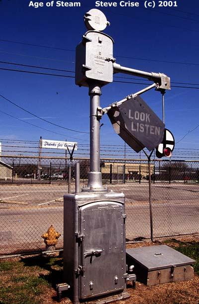 Railroad Museum, 1105 Washington Street, Dallas, Texas. 75315. Web site address is www.dallasrailwaymuseum.com, e-mail is info@dallasrailwaymuseum.com. Photos were take on March 21, 2001. I highly recommend a visit to this museum when visiting the Dallas area. Besides the signals on display the collection includes both steam and 1st and 2nd generation diesels. The highlights of the rolling stock collection for me was a UP "Big Boy" # 4018, another former UP locomotive # 6913, a DD40AX with dual 645's, and oddly enough a lone GG1 # 4903. Also in the works is AT&SF Interlocking Tower # 19. It was under construction while I was there so I did not get a peek inside (no matter how much I begged)! Unfortunately there is no info in the pamphlet the museum gave me on any of the signals so my information is limited in this regard. I almost forgot to mention the very cool steam whistle display at the museum. Operational only on the weekends ( I missed this too! ) are about a half a dozen steam whistles that are actually powered by live steam! Patrons get to tug at the whistle cord of there choice to hear what a real steam train whistle sounded like. Try to plan your trip to visit the museum over the weekend so's not to miss out on Tower 19 and the working steam whistle display. Maybe the wig wags and semaphores work on the weekends too! |