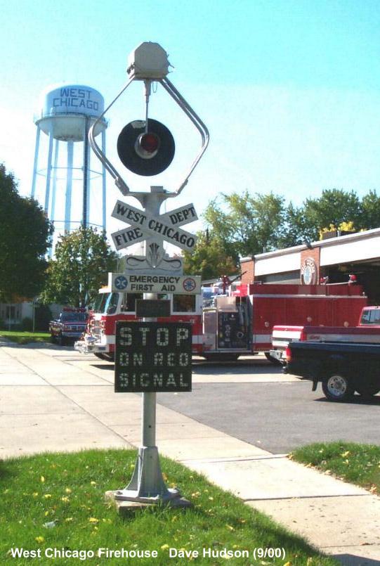 When I did come back I realized that the flagman isn't protecting a railroad crossing. It would appear that it warns traffic about emergency vehicles leaving the fire station. I was a bit behind schedule, so I wasn't able to quiz the firehouse staff about it. There is a plaque on the mast that indicates it was donated by a private individual in 1975. I've included several pictures of the unit and my usual Garmin map of the location. Oh, the fire station's address in West Chicago is 200 Fremont St." |