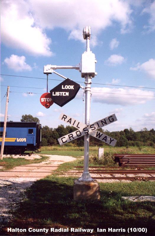 "I know of two wig wag's in Museums up here in Canada. One is at the Northern Ontario Railroad Museum and Heritage Center's "Prescott Park" with their steam locomotive in Capreol, Ontario. It looks in rather rough shape. The other one I know about is at the Halton County radial Railway (HCRR) in Milton, Ontario. (Bout an hour and a half from Toronto). The HCRR is a streetcar museum that I am a member of. Their wig wag is in good shape and in working order. It is not in use. Currently it's just a static display pending wiring. Years ago when I first joined the museum, it was running, but when we changed the poles for our over head wire the wigwag was not rewired. It's one of those jobs on the long list of things to do. In the enclosed picture you can see the concrete footing for the signal box is ready and you can see the signal box sitting in the field behind to the right of the wigwag and to the left of the pile of rail is sitting ready to be installed. Unfortunately keeping our streetcars running has kept us busy so we haven't been able to hook it up again." |