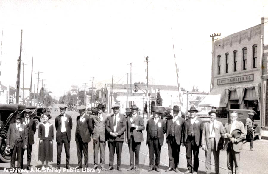 Ca. Notice wigwag behind the group. Looks to be around 1920.