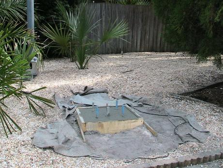 level the frame in the soft sand that we have here in Florida. Made the pad 22.5 inches on a side. That way the outside dimensions would be 2 foot square for the template. |