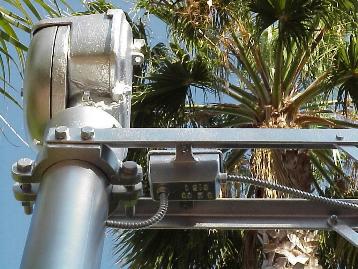 I obtained this RRS AutoFlag 5 on eBay from someone in my former hometown of Des Moines, IA after I had moved to Florida. A buddy stored this in his garage until I could get back home to pick it up. The base for this signal and the cantilever were purchased from an Illinois Central signal maintainer from the actual Divernon, IL site when it was dismantled in 2006. I also purchased a 5 inch adaptor for the bell so it would fit on a 5 inch steel mast. I dug a 4 foot deep hole for the base and used 3/4" threaded rods that were angled 6 inches from the ends. It took about 35 bags of concrete for this base. I wired it in with 3/4 inch conduit to the metal cabinet on the fence. The wiring was pretty straight forward. Used a double switch so that I could power it so that there would only be power to the bell switch when their was power to the signal. Used standard wiring techniques since I did not want to have it on a timer. I did wire the light bulb separately to a 12.8 VDC power supply and used an old railroad relay to power the light whenever there was power to the signal. Getting the base and the mast up was easy - everything else was difficult. I had a neighbor help me with the cantilever. Put this at a more prototypical 12 feet height. My neighbor did not realize that the metal clamps did not need to be tightened as much as he did and the clamp broke. As it turned out, there was a flaw (a void) in the casting of the clamp so I am glad that it happened now rather that during a strong wind. My friendly local welder was able to make it look good as new. The next problem was lugging the restored motor up to the cantilever. I had to take apart again and reassemble it up on the cantilever. Again, I used some armored cable to make it look like the prototype. |