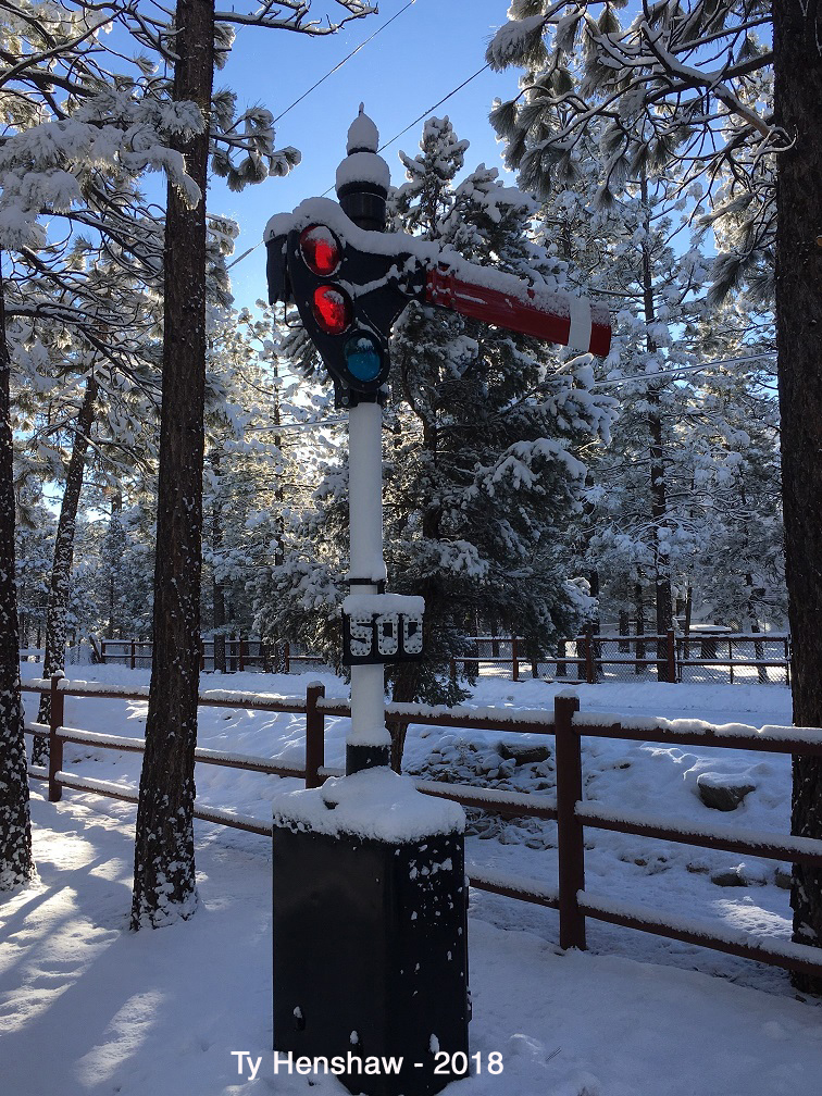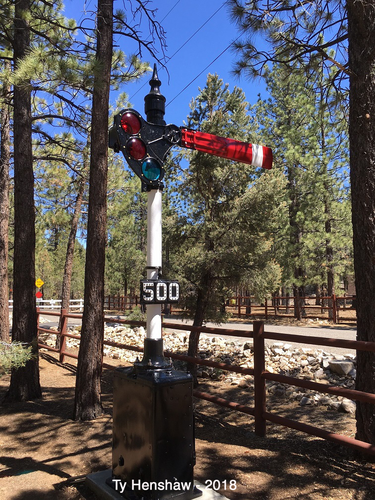 Both signals, I was told, came from the Southern Pacific. The Semaphore was serving in the Delano area prior to removal. I have no idea where the wig wag served. The semaphore is fully functional and only sits on the motor box instead of the two stacked boxes commonly seen with these signals. The wig wag was in great shape and only required some painting and cleaning to get it working again. The cantilever was purchased some years ago and the mast was purchased from my local pipe supplier. The base is a regular Griswold signal base (not a rotating stop sign type). I figured this base is the next best thing since Griswold purchased the company at some point. I am still on the hunt for the Magnetic Signal box base ideally - but those are hard to come by. The Big Bear wig wag is controlled by my iPhone. I use a small transformer for the power which is plugged into a WiOn (wifi controlled outlet). The WiOn outlet has an app for the phones. So not matter where I am, I can turn on the signal and give it some exercise. :) |