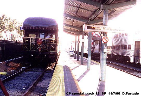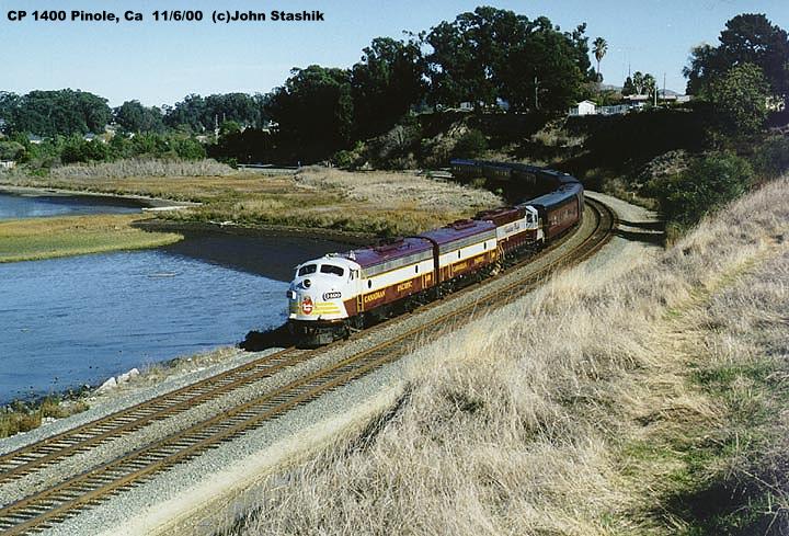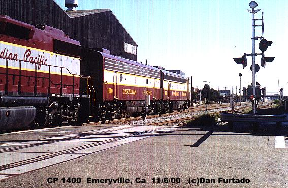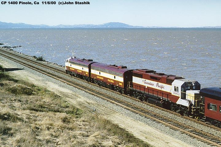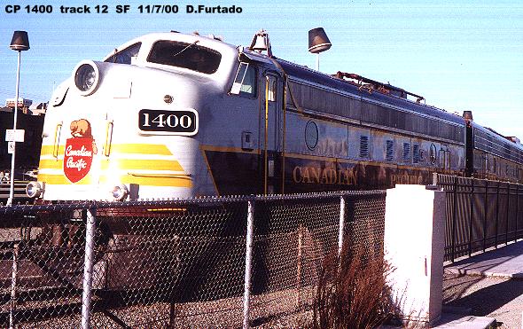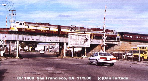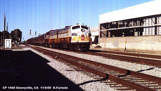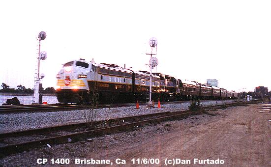 On November 6th, 2000, a Canadian Pacific special featuring 2 F-9's, a GP-38-2 and some awesomely restored vintage passenger cars arrived in San Francisco. The purpose of the trip was to promote Fairmont Hotels, a company owned by Canadian Pacific. The passengers on the train consisted mostly of travel agents. For those of us railfans, this was an opportunity not to be missed. Here is a small gallery of photos by various railfans of the trip... |