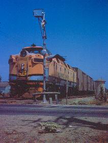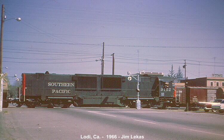 Date: July 17, 1965 Location: Lodi, Ca - Kettleman Lane (now hwy 12) Ex- D&RGW Krauss-Maffei hydro (SP got 6 of them). This is now a 4 lane underpass for HWY 12. |