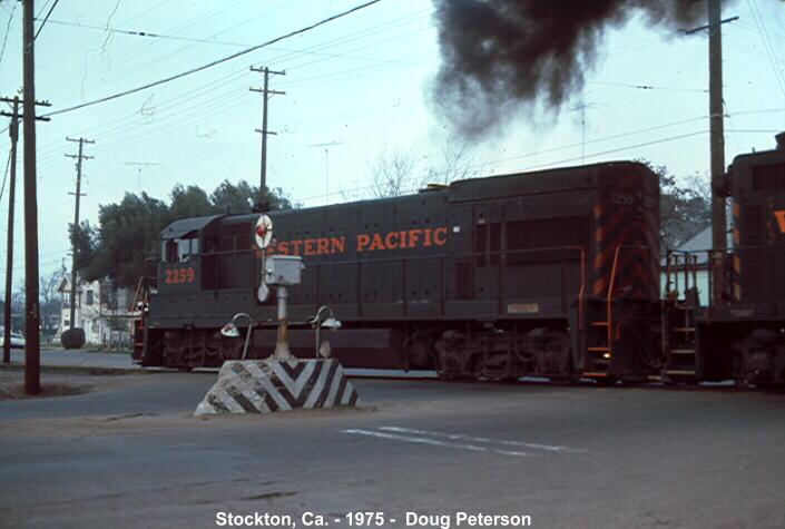 Date: 1975 Location: Stockton - Hazelton Ave. WP U-22-B 2259 doing what they did best - Smoke! |